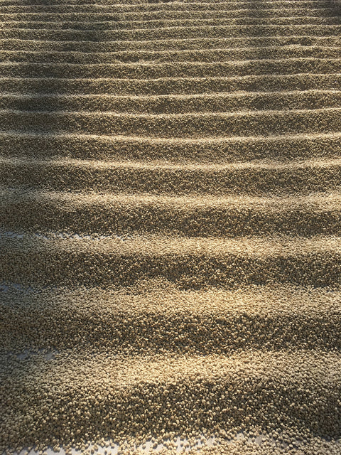 Following fermentation, parchment is agitated to remove remaining mucilage and washed in clean water. All water used during pulping and washing will be filtered – usually through earthen holes – so that the organic solids do not contaminate local waterways.